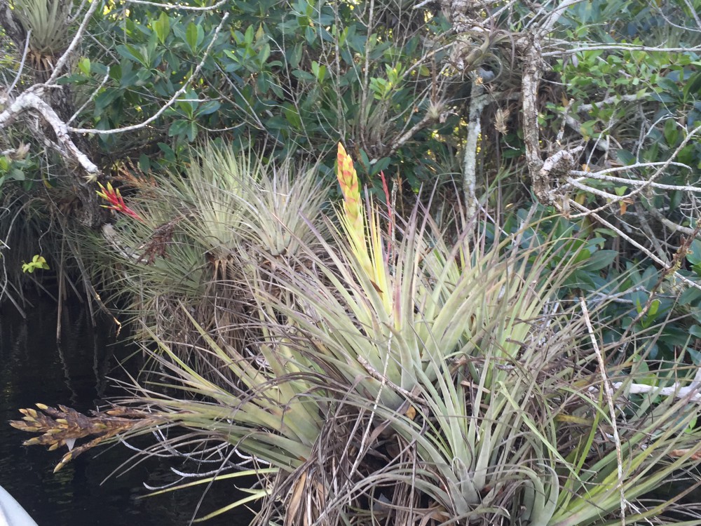 As I continued towards the SUV and the waiting libations, I didn’t even sniff another fish, but was treated to some of imagethe first blooming cardinal air plants of the season, one of my favorites.  These epiphytes, imagewhich get all their nutrition and water from the air, not the soil, unfold with vibrant red and purple flowers, splashing the green mangroves with brilliant colors in March and April.  They are prolific in this unspoiled environment, anchoring themselves on dead mangroves along the creek.  As I snapped some pictures, it dawned on me that sometimes these fishing trips with their skimpy results actually turn into fabulous ecotours, offering glimpses of nature few get to see.  I felt a little bit like Marlin Perkins of the Wild Kingdom TV show fame (OK, now I am really dating myself).  It somehow didn’t matter I had only landed one fish in 11 hours.  The lemons the fish had served up for me, had magically become lemonade.