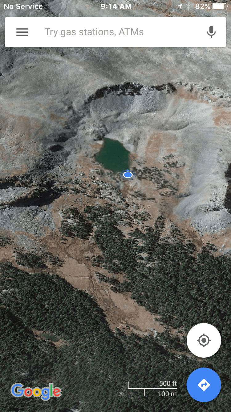 The trail, about 1.2 miles one way with an elevation gain of 500 feet, is steep at first, but well-marked and not too difficult, although several trees have fallen across the path.  In imageabout one-half mile, the trail levels out and emerges into a big valley bisected by the creek that empties Arthur Lake. The key is to cross the creek and meadow as soon as you emerge from the canyon section and head up the incline to the lake.  If you cross further up, you will run into some very marshy terrain, and if you hike up the trail further and follow the north side of the creek, you will hit some very imposing palisades that are risky to climb.  As you ascend towards the lake, keep high above the outlet creek which will be on your left.  It’s about an hour trek to Arthur Lake from the trailhead, with several breaks to catch my wind.