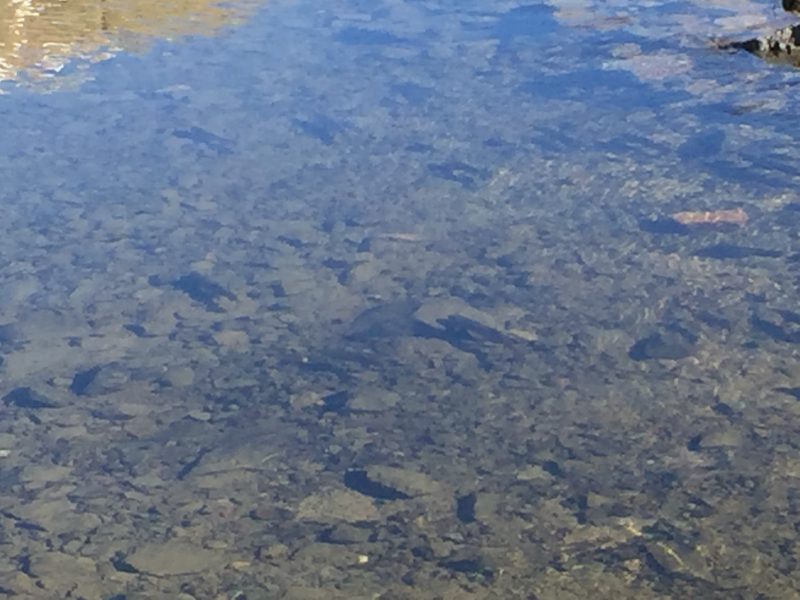 8. August 12, 2025 Had no idea how to reach Arthur, slogged up the west (wrong) side of the creek and somehow made it there just beneath the cliffs and crossed the creek in a sketchy place just beneath the waterfall. I hadn’t read this article beforehand. No real trail anywhere there’s full sun because the plants overgrow everything. Anyhow, same thing as above, absolutely no sign of any fish. I almost cried. Didn’t seem like there’s enough food for them, didn’t see scuds in the water and very little insect larvae in the water.